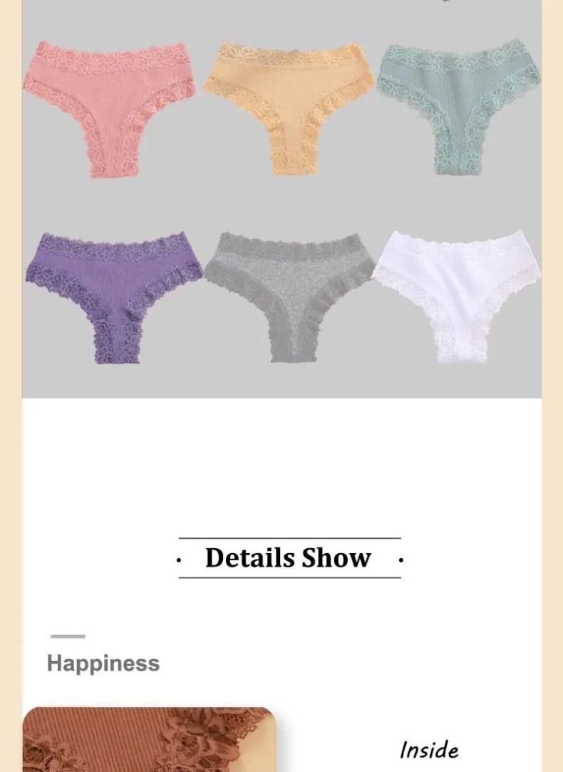 5PCS Set Women Lace Seamless Cotton Panties Sexy Brazilian P