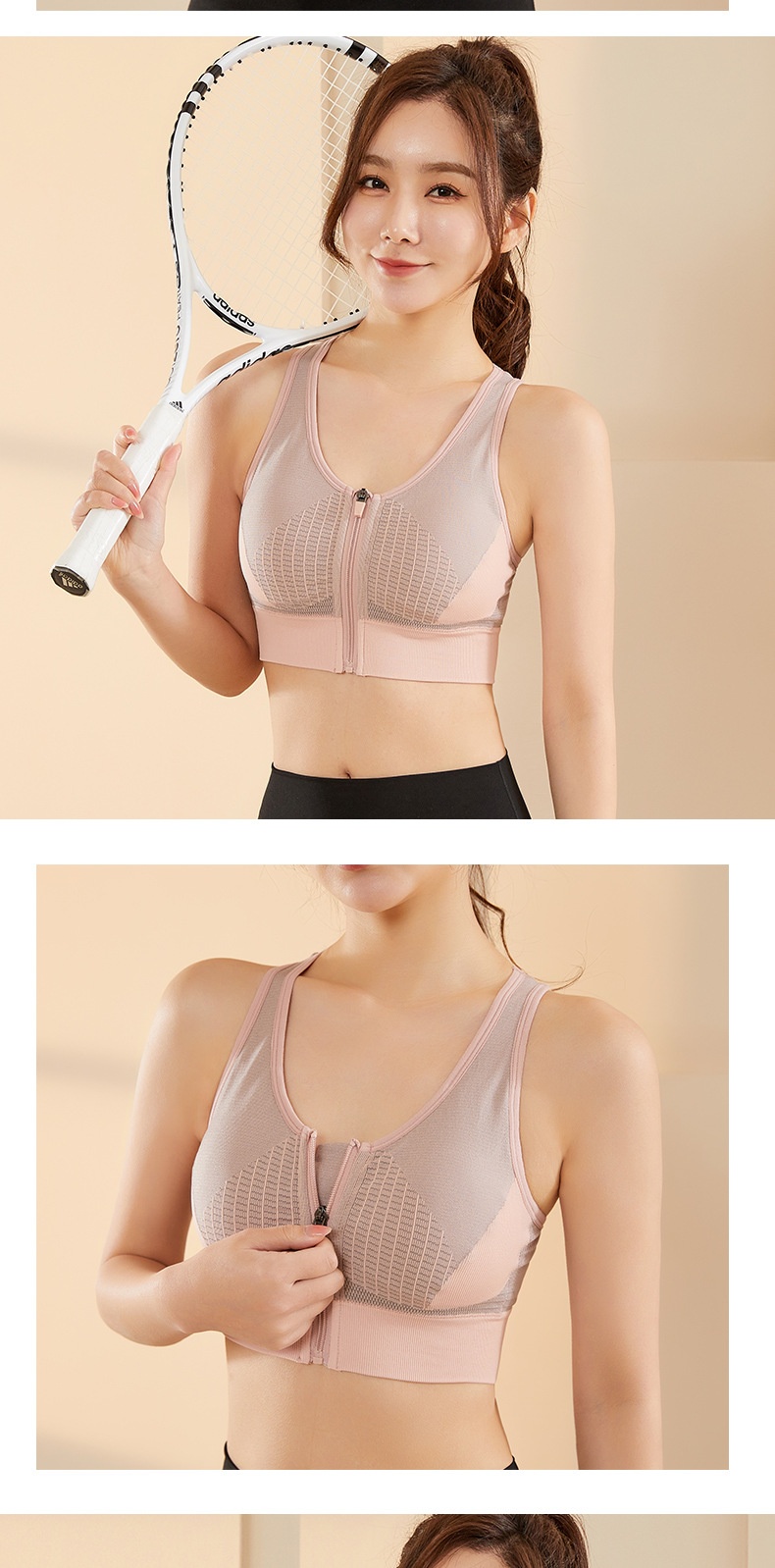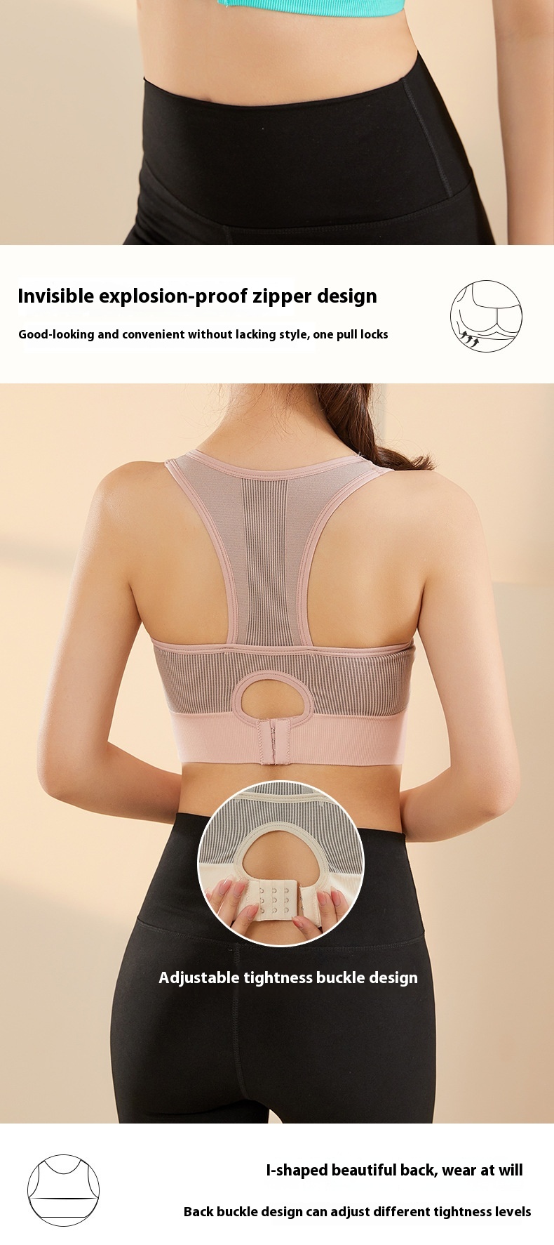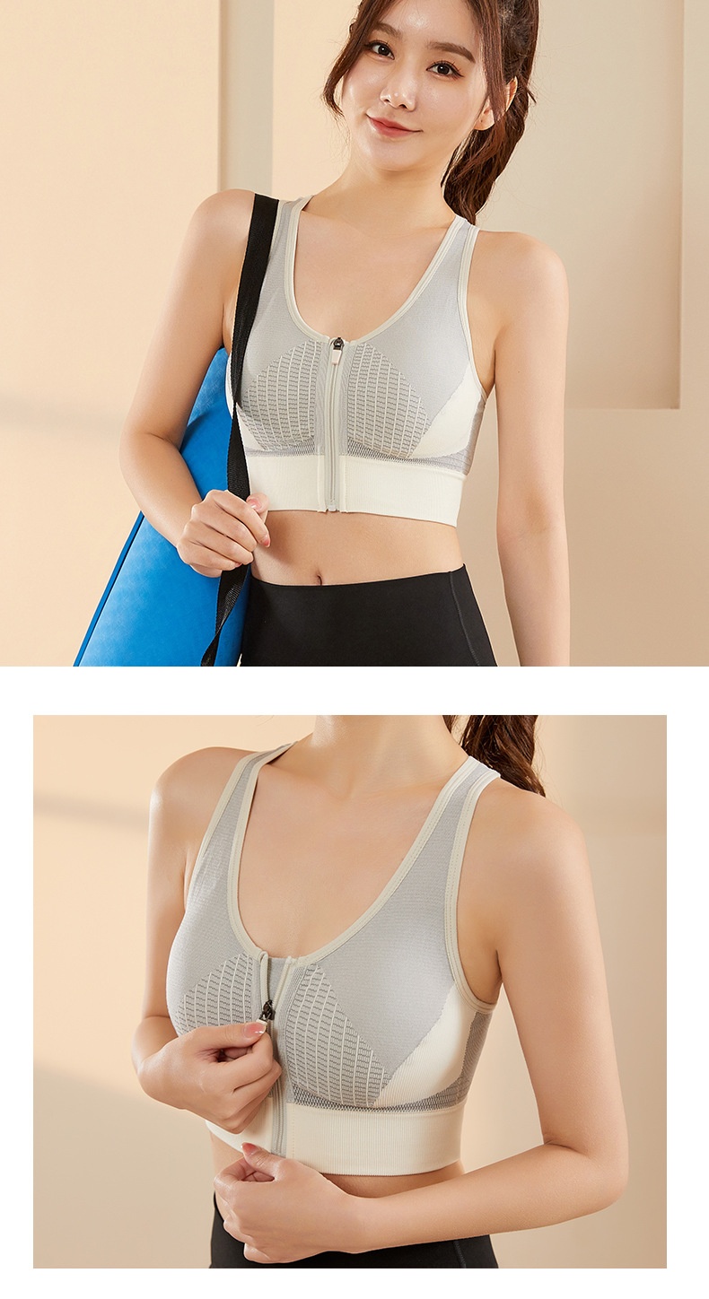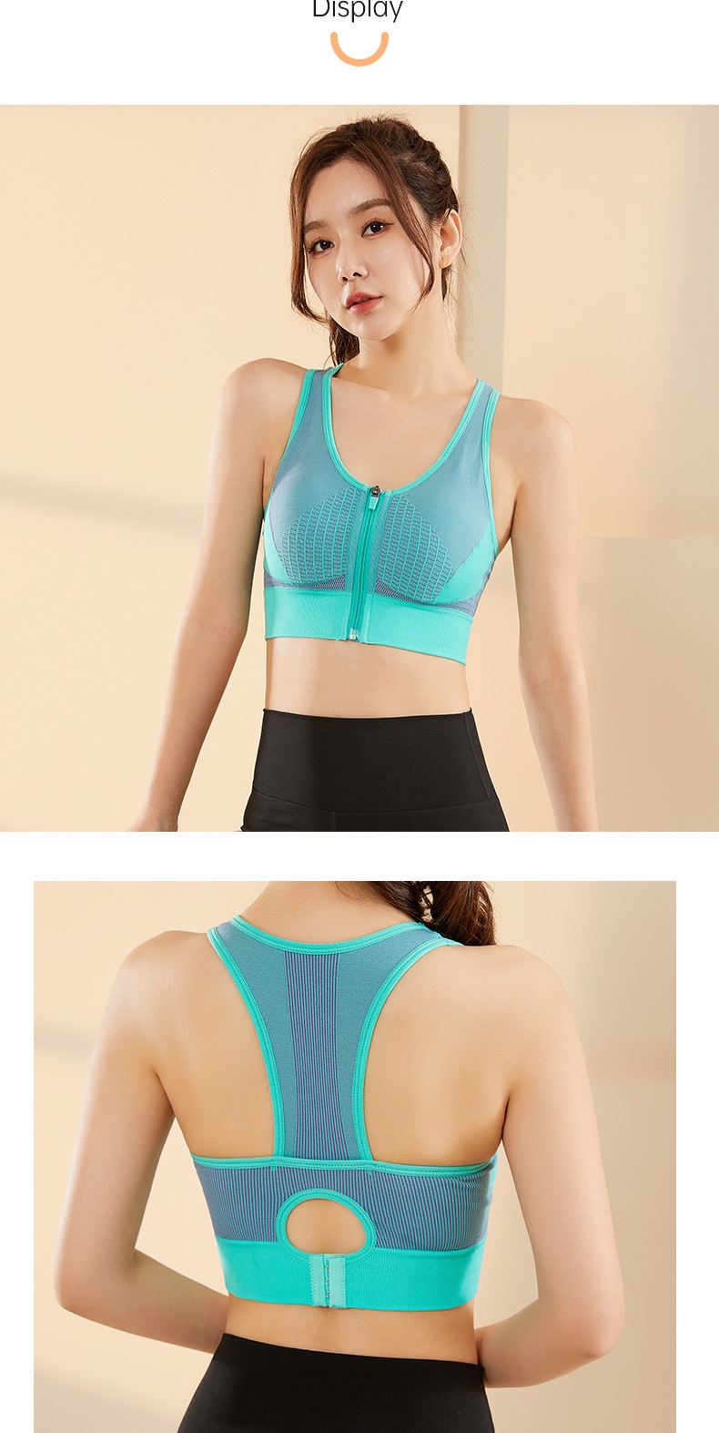 Contrast Color High Strength Shockproof Front Zipper Sports Bra