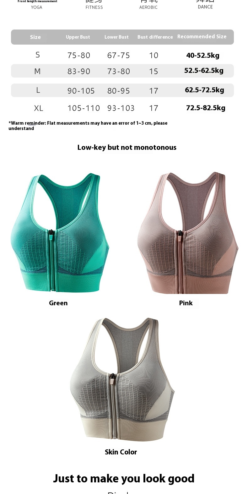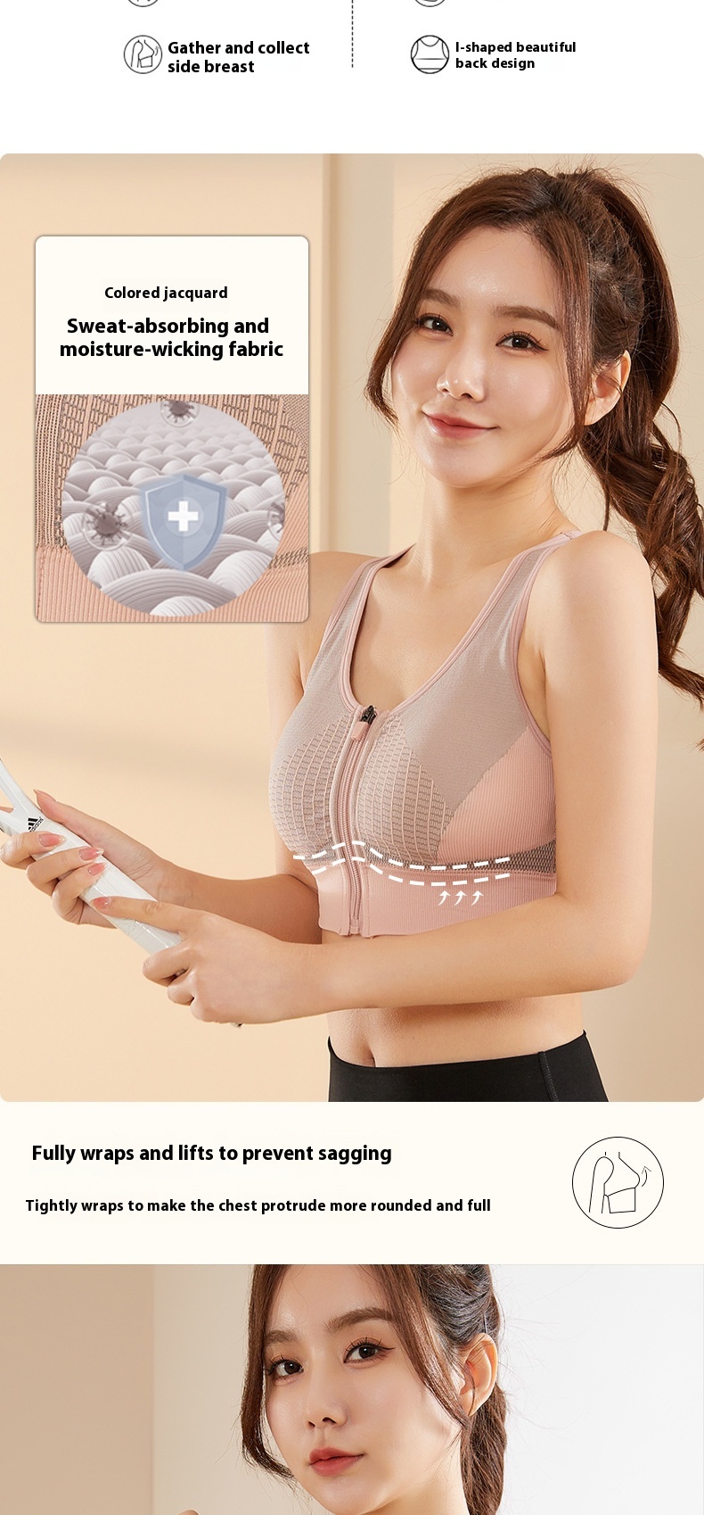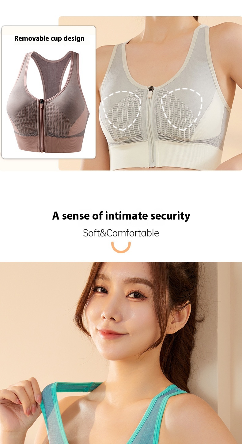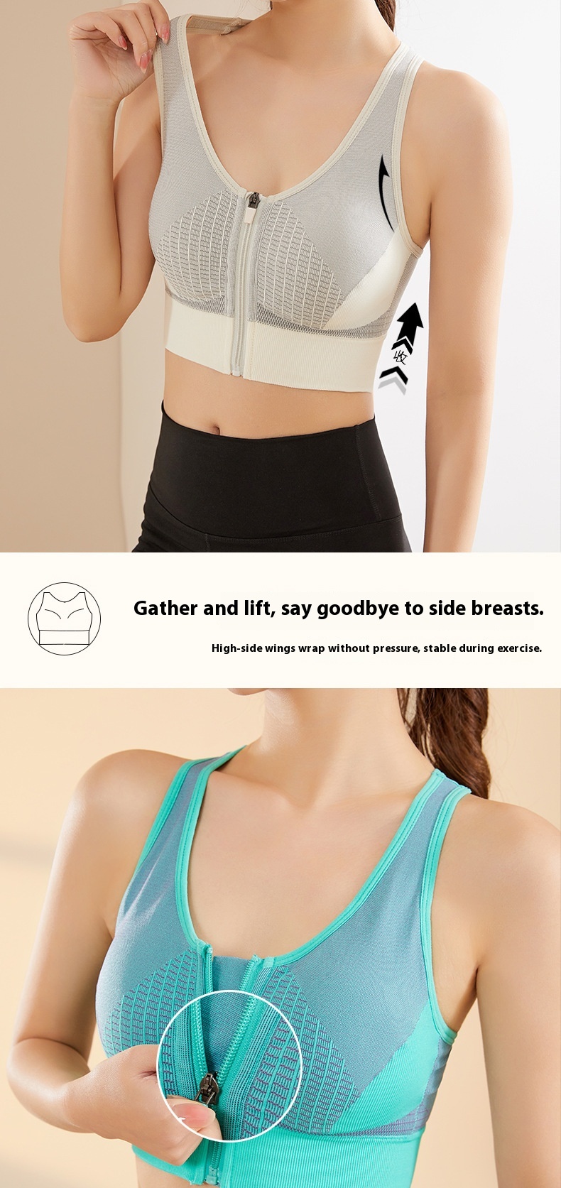 Contrast Color High Strength Shockproof Front Zipper Sports Bra