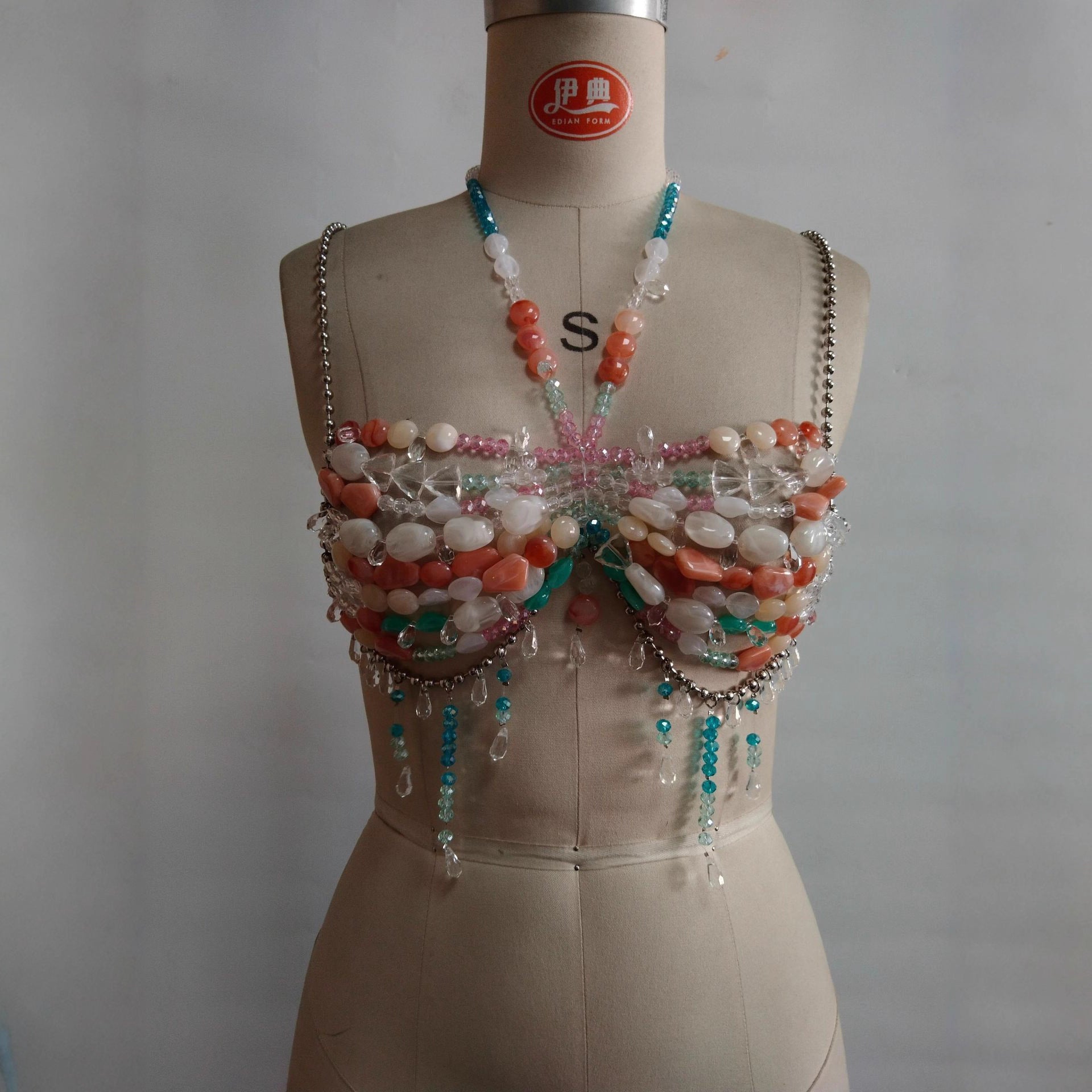 Halter Vest Color Gem Body Chains Chest Necklace